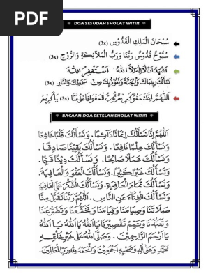 Pdf Doa Setelah Shalat Witir Lengkap Arab Latin Dan