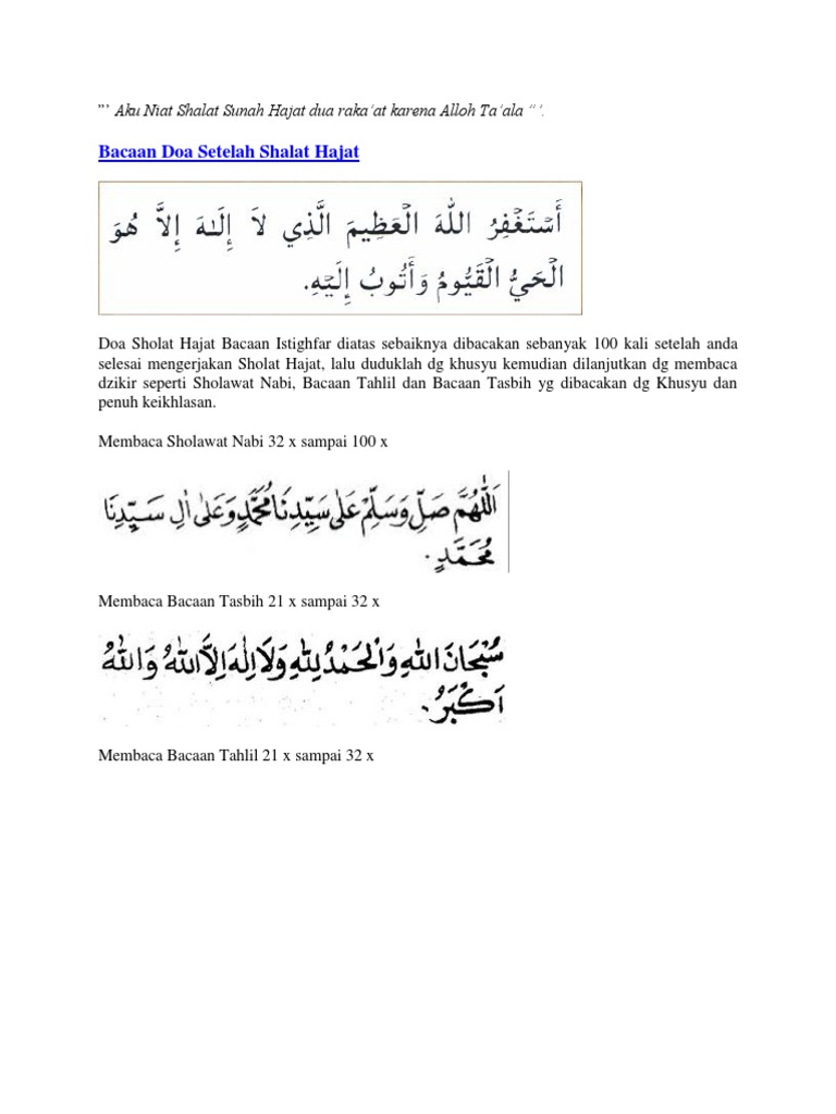 Bacaan Niat Dan Doa Setelah Shalat Hajat Docx