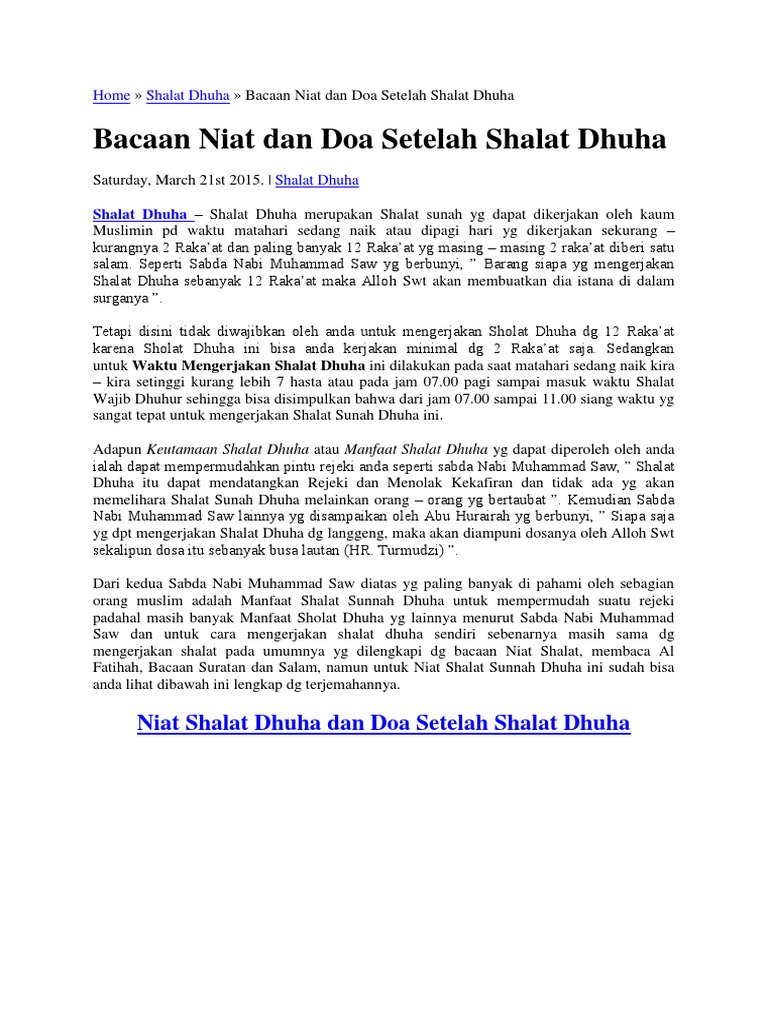 Bacaan Niat Tata Cara Dan Doa Setelah Sholat Dhuha Lengkap