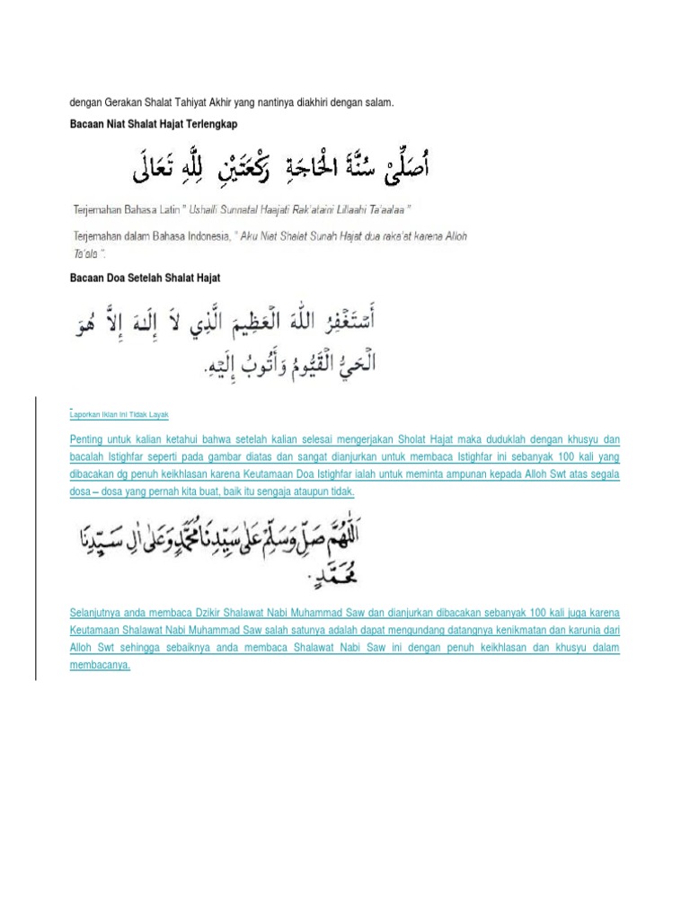 Syekh nawawi al bantani dalam nihayatuz zain menyebutkan sebuah doa yang biasa dibaca saat shalat hajatdoa ini berasal dari hadis yang diriwayatkan oleh imam bukhari dan muslim. Doa setelah sholat hajat yang mustajab bahasa arab latin dan artinya januari 14 2019 april 21 2019 maulana yusuf pengetahuan orang yang sedang mengalami banyak masalah atau kesulitan yang menimpa manusia entah itu untuk pribadi dianjurkan untuk melakukan sholat hajat agar allah mengabulkan apa yang sedang menjadi hajat kita boleh.