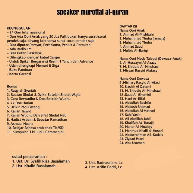Speaker Murottal Alquran 30 Juz Lengkap Advance Tp 600