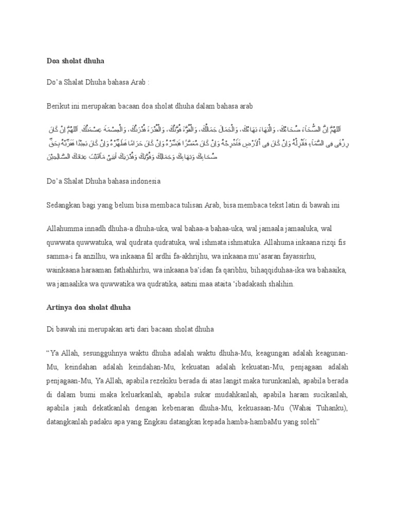 Doa Sholat Dhuha Latin Arab Artinya Dengan Niat Dan